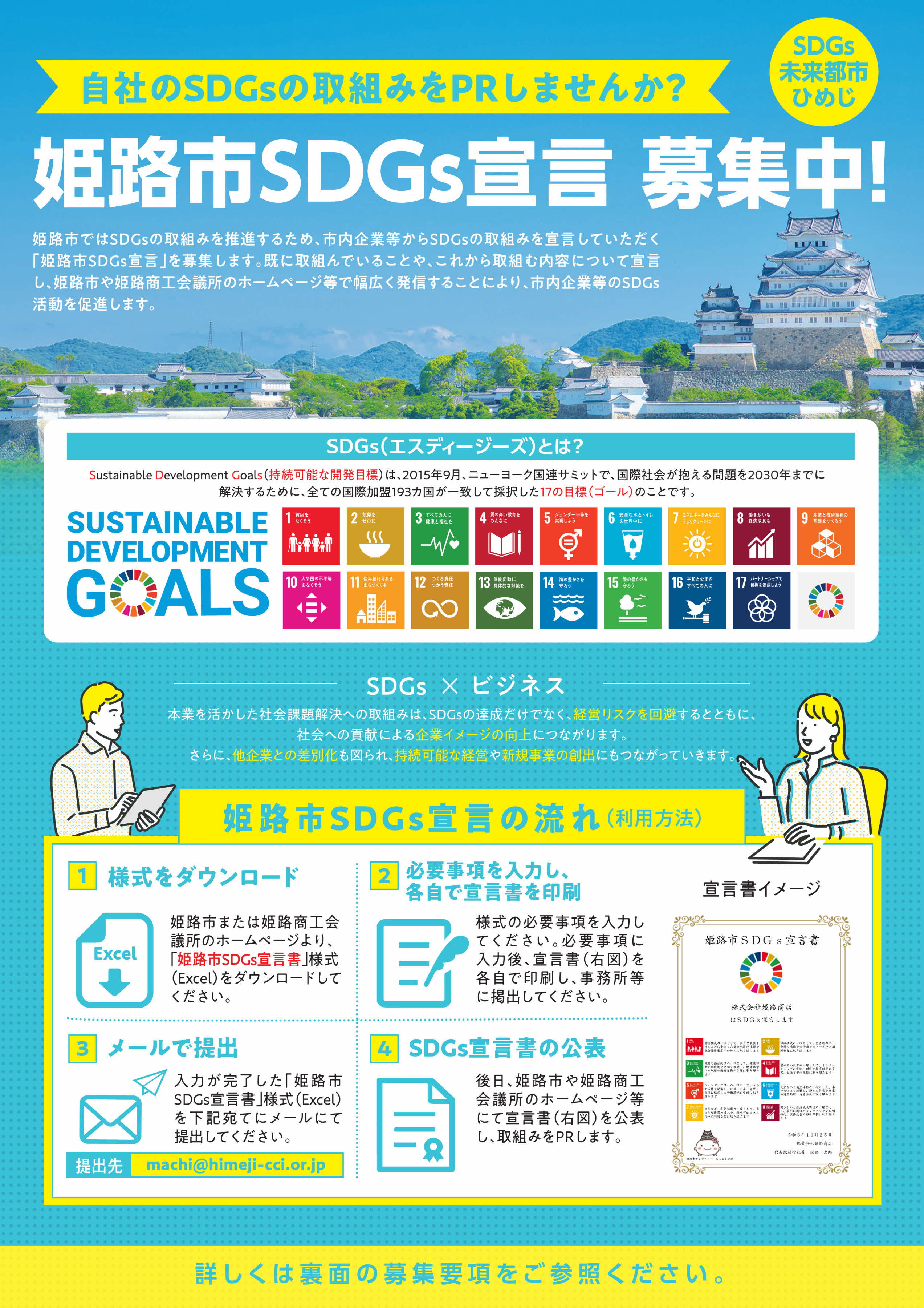 このたび、自社のSDGsの取組みを幅広くPRできるツール「姫路市SDGs宣言」の様式を作成しました。